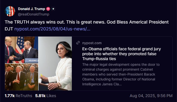 https://nypost.com/2025/08/04/us-news/ex-obama-officials-face-federal-grand-jury-probe-into-whether-they-promoted-false-trump-russia-ties/