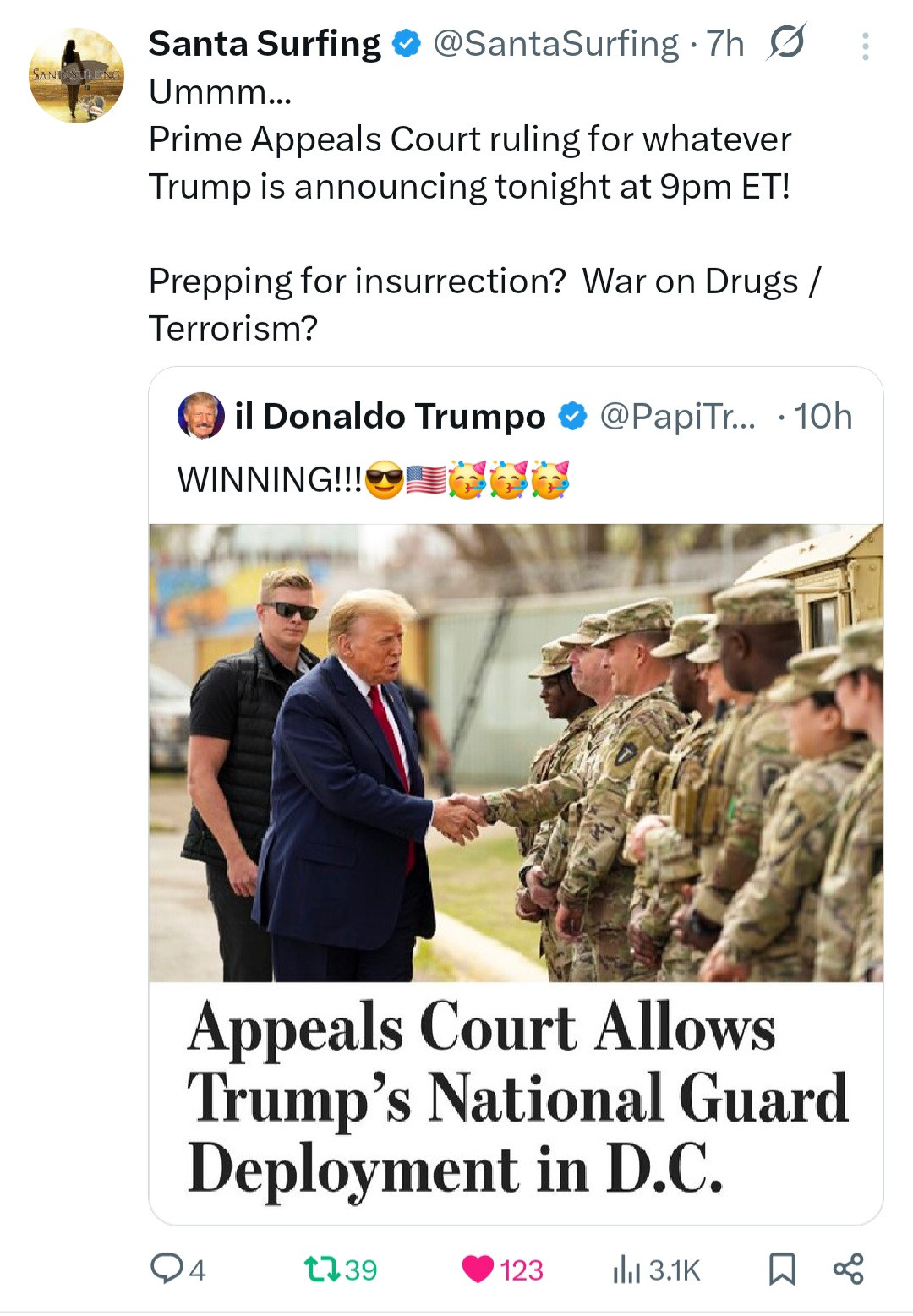 & telling soldiers to go against Trump.