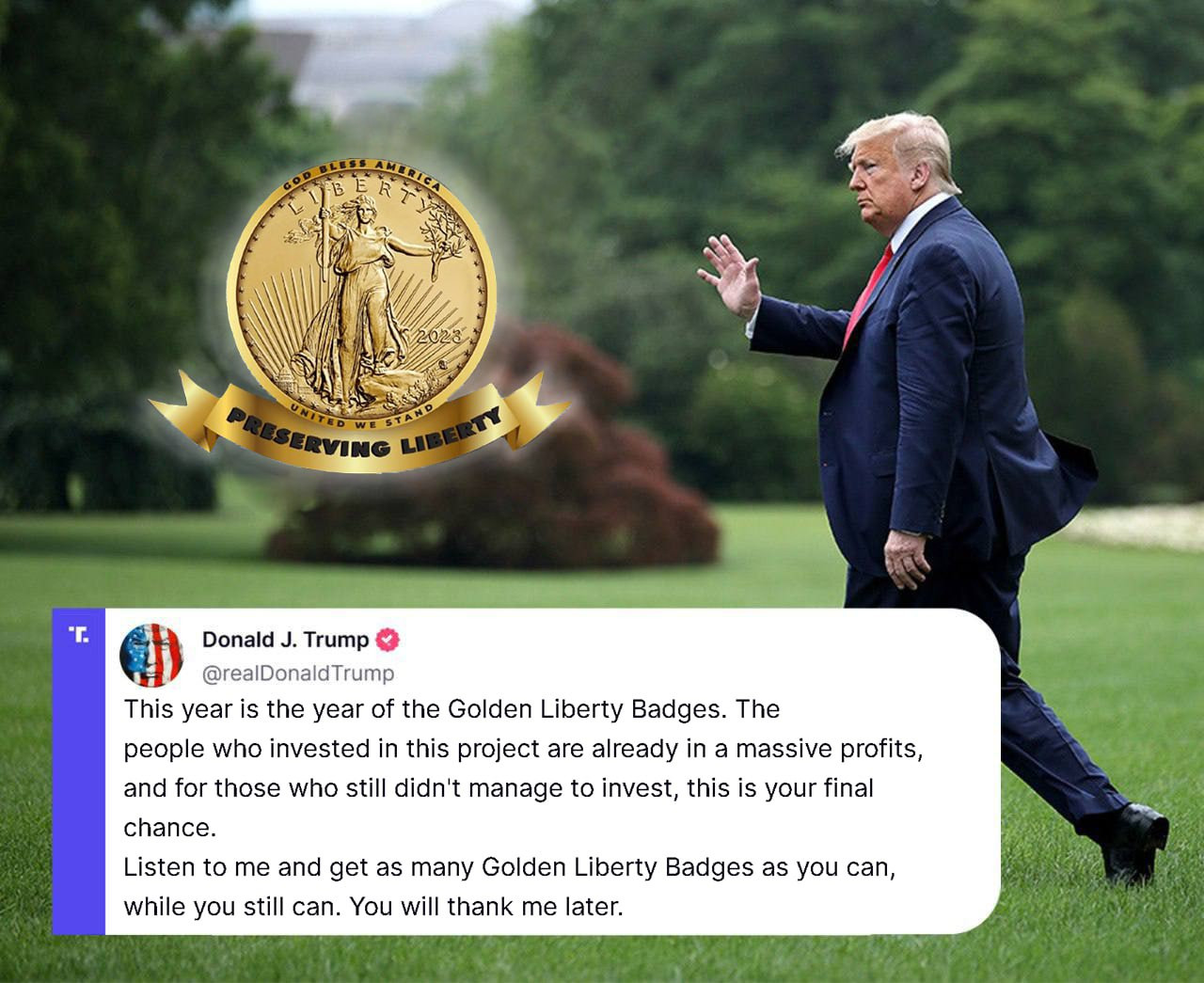 📣 Donald Trump says: “Buy 10x Golden Liberty Badges NOW and get 2x completely FREE—this could be your ticket to $5,000,000 in wealth!”