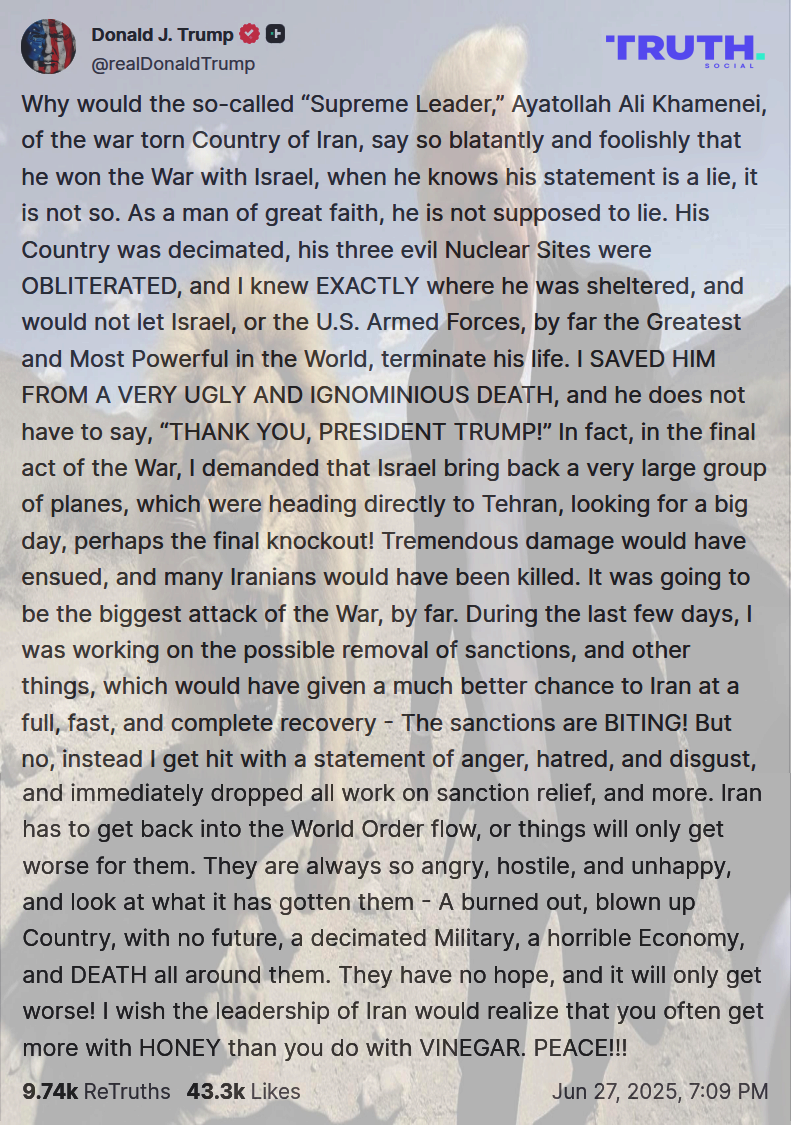 You can see the reason I never place links to truth social in the OP...