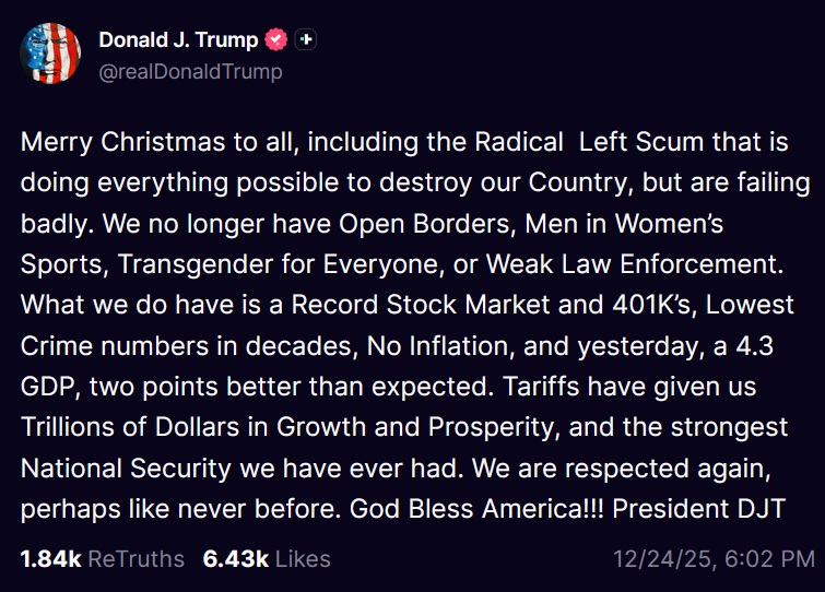 Trump wishes 'Merry Christmas' to Americans, including the 'Radical Left' | Just The News