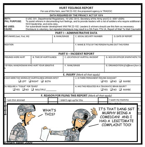 Found out that a Hurt Feelings Report is a REAL thing in may areas of Gov't & Private Business. LOL Here are some good ones...