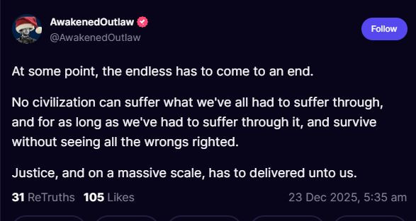 A patriot.. we miss him...and he is right.. justice cometh