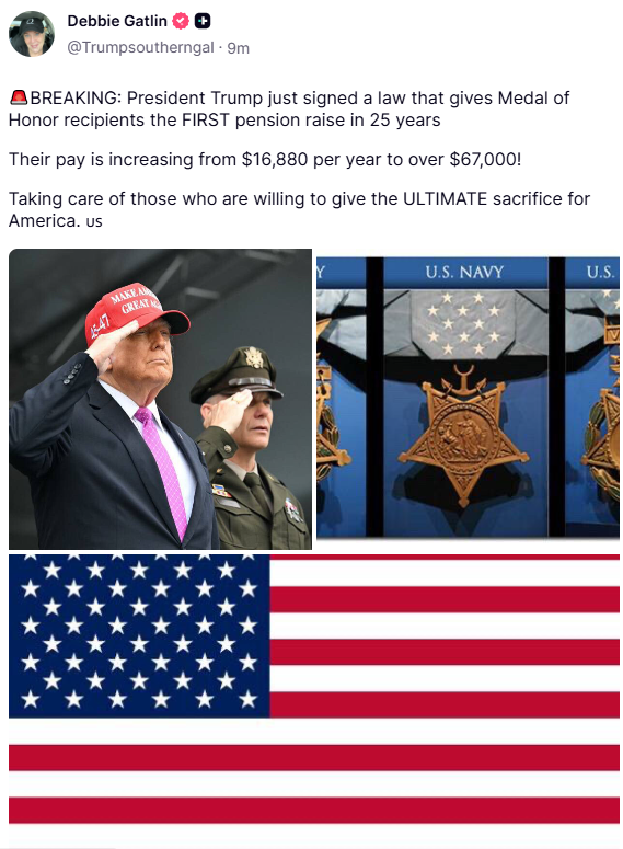 https://www.stripes.com/theaters/us/2025-12-03/medal-of-honor-pension-increase-trump-19969798.htmlPatriot, Digital soldier, Anon, Memer, Empath, WWG1WGA, MAGA,, NRA, SAVETHECHILDREN, God Wins, Trump is my President-NO DMS-