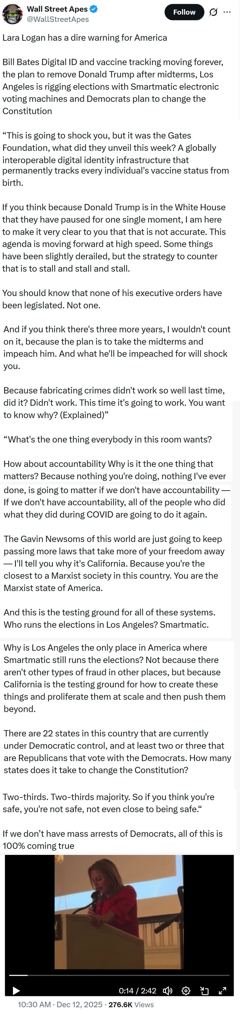Right after the 2020 elections, we noticed a lot of odd things, Masks, Biden getting a funeral canon salute, a lot of very strange things, and what about all of the sealed indictments? The shit has to hit the fan soon, and before the next elections. 😏 https://x.com/WallStreetApes/status/1999502002691408189