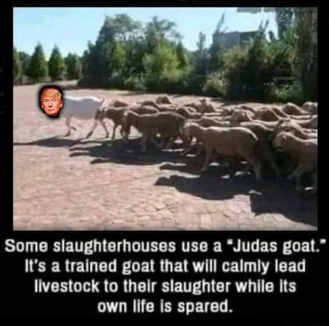 I beg to differ. I believe this is truth in plain sightβa hint at Trump being the βJudas Goatβ (forerunner) for the beast and his system (and leading his base into accepting/embracing it)