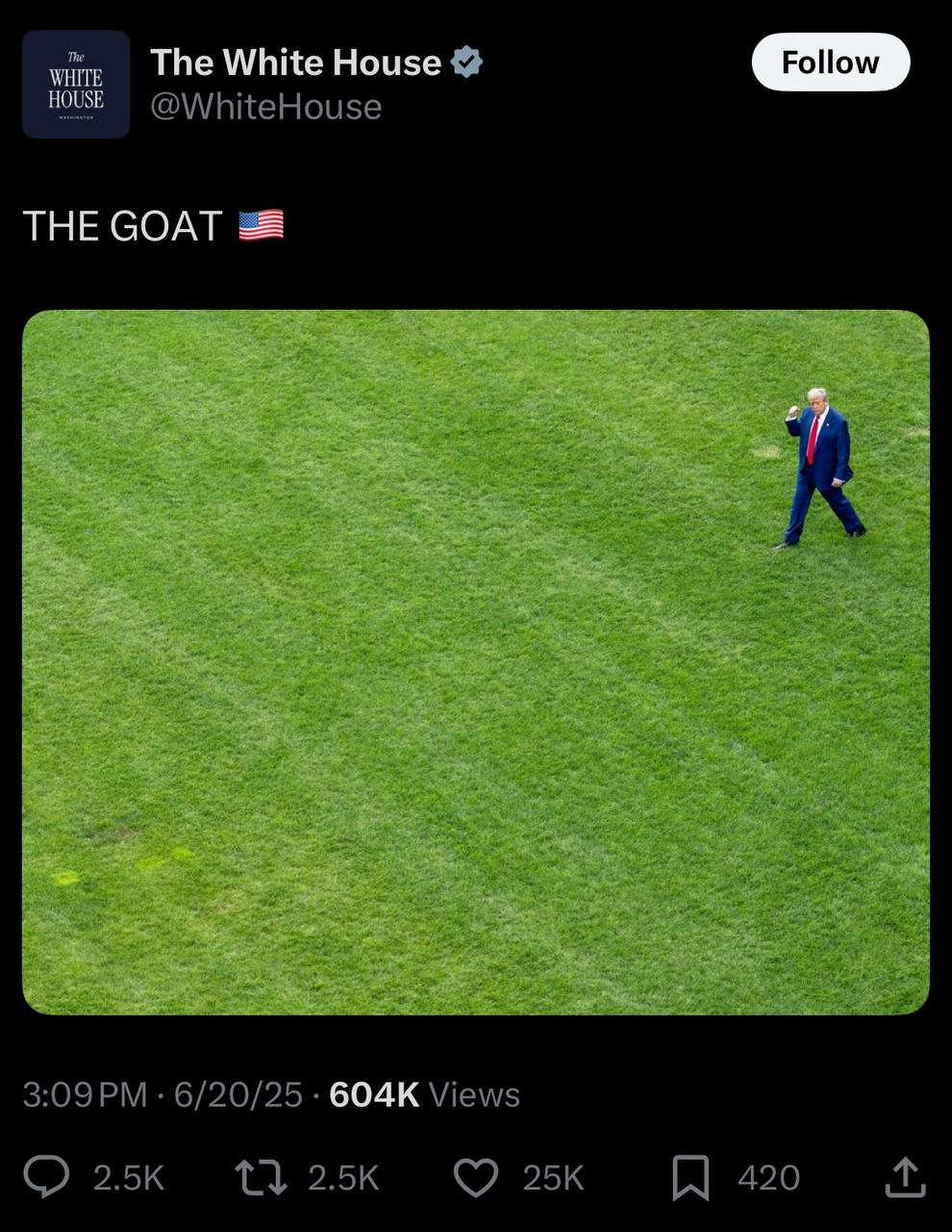 I find it rather strange how over the course of the last 6 months we have seen Don. Jr, a plethora of other celebrities, and now the official White House account on Twitter all referring to Trump as βthe goatβ