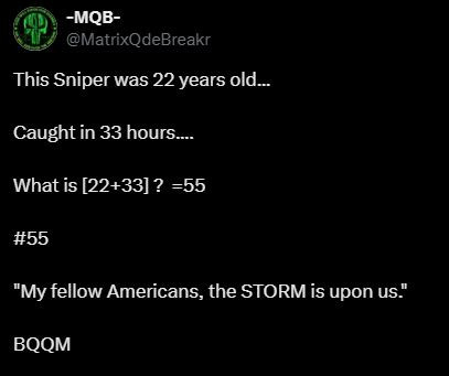 Kat, I haven't seen or heard anyone call us Q-Tards, lately. Perhaps they NOW know someone who has been ARRESTED. Maybe even [THEY] themselves got that "knock on the door" that Lt. Col. Bosi told us about. 🤔
