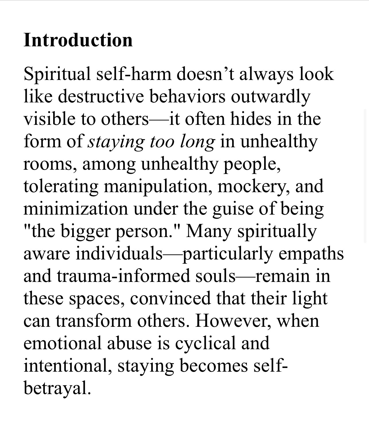 Spiritual self harm is allowing others to treat you like an option when they are your priority, they gaslight and you love them softer and more gently cos you know what it’s like…
