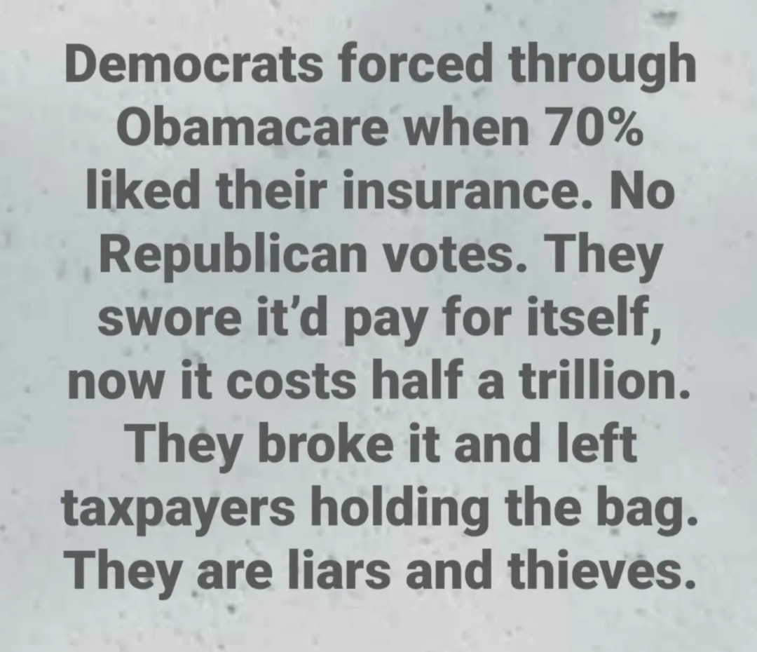 https://www.thegatewaypundit.com/2025/11/trump-reveals-hes-talks-democrats-totally-gut-obamacare/Not a scientist, nor do I claim to be one...T-shirts, blue jeans, baseball hats and beer...Stealer of fine memes...Frequent F-bombs 😬🤣