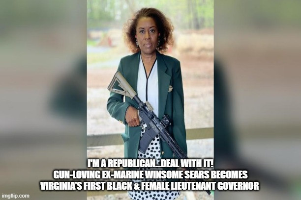 a stunning election that sees Republicans poised to end the Democratic control of the Virginia House of Delegates—in the socialist Democrat Party iron grip controlled State of New Jersey, today sees it’s election for governor being “too close to call”—and in what one can only imagine is causing socialist Democrats today to ask why more dead people didn’t come out to vote for them, yesterday it saw gun-loving US Marine veteran Republican Party candidate Winsome Sears becoming Virginia’s first black immigrant Lieutenant Governor of Virginia—a stunning election victory Lieutenant Governor-elect Winsome celebrated with a massive crowd cheering “USA! USA! USA!”, 2 whom she joyfully responded: “When I joined the Marine Corps, I was still a Jamaican…But this country had done so much for me…I was willing, willing,to die for this country”, and in describing this stunning election victory that now makes her the deciding vote in the Virginia Senate,saw her simply stating: “It’s a God thing”.