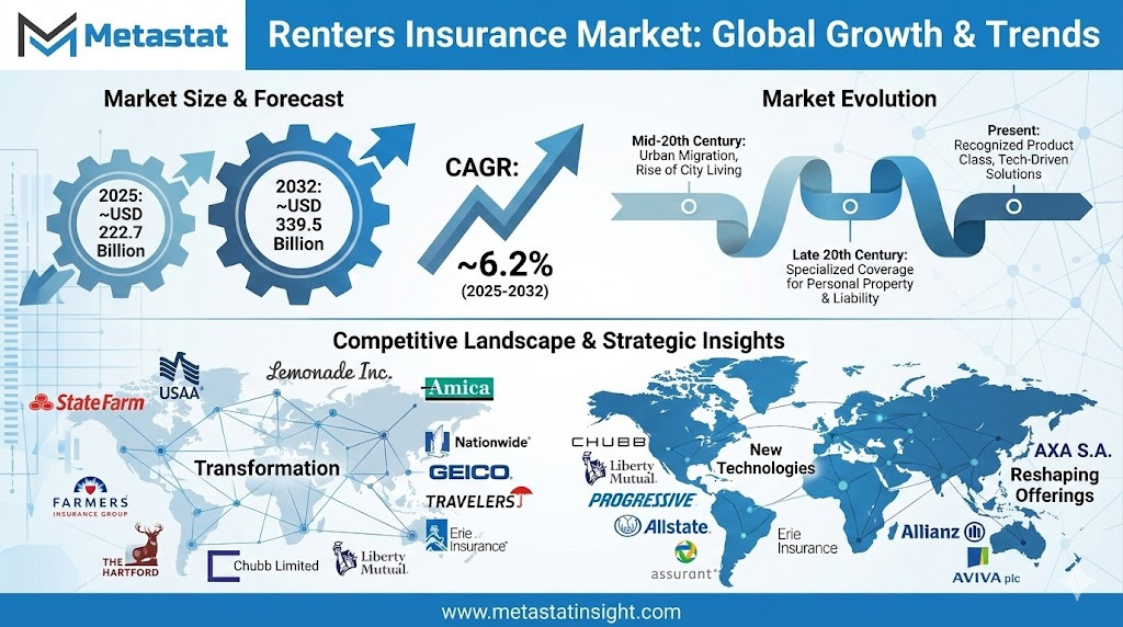 Renters Insurance Market Valued at USD 222.7 Billion in 2025, Growing at a CAGR of 6.2% Through 2032
