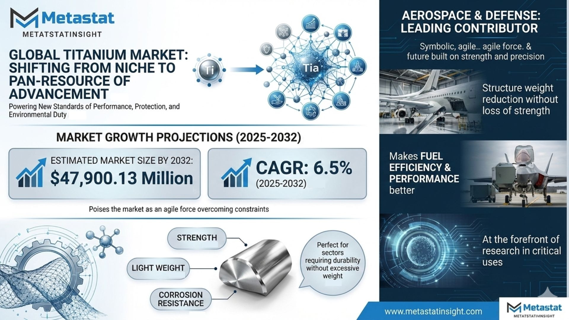 According to Metastat Insight-style structured analysis, the global titanium market is valued at USD 30,906.52 million in 2025 and is projected to reach USD 47,900.13 million by 2032, exhibiting a CAGR of 6.5% during the forecast period. Alpha and Near-alpha Alloy dominates microstructure (USD 9,636.65 million), prized for creep/high-temp strength in aerospace.