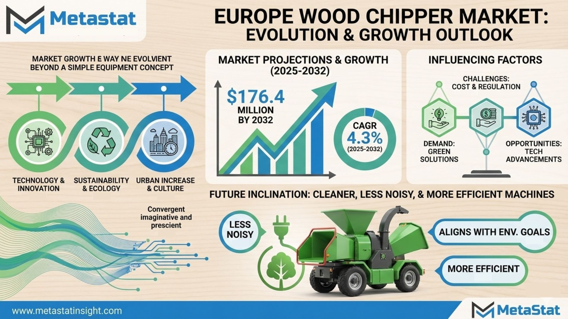 According to Metastat Insight-style structured analysis, the Europe wood chipper market is valued at USD 131.3 million in 2025 and is projected to reach USD 176.4 million by 2032, exhibiting a CAGR of 4.3% during the forecast period. Drum Chippers lead type segment (USD 65.1 million vs. Disc at USD 46.2 million), ideal for high-volume forestry.