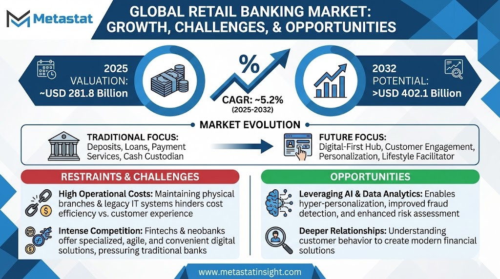 Retail Banking Market Valued at USD 281.8 Billion in 2025, Growing at a CAGR of 5.2% Through 2032
