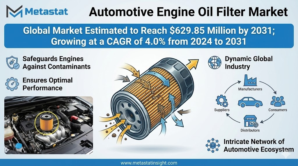 Global Automotive Engine Oil Filter Market to Reach USD 629.85 Million by 2031, Growing at a CAGR of 4.0%