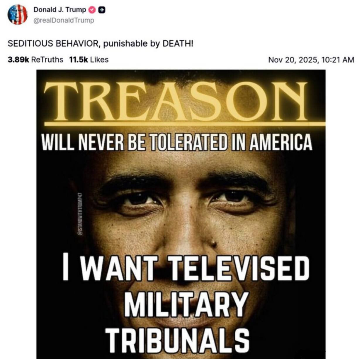 TREASON will NEVER be tolerated in America.