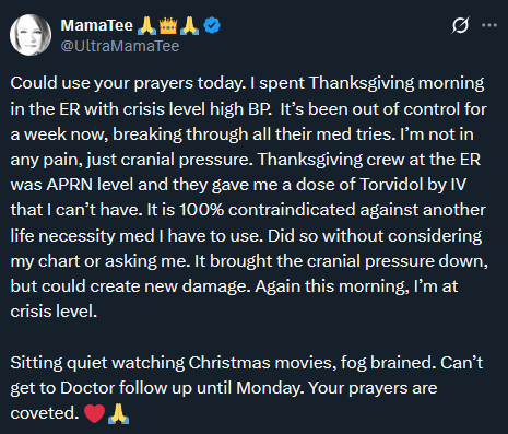 Mama Tee needs prayers please🙏