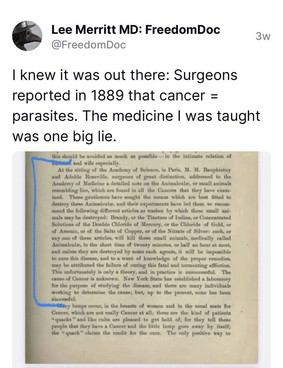 I'm sure this isn't the only doctor, as a matter of fact they all have done this because the real cure for cancer would have been ivermectin and fenbenzinol but there's no money in that 🤔