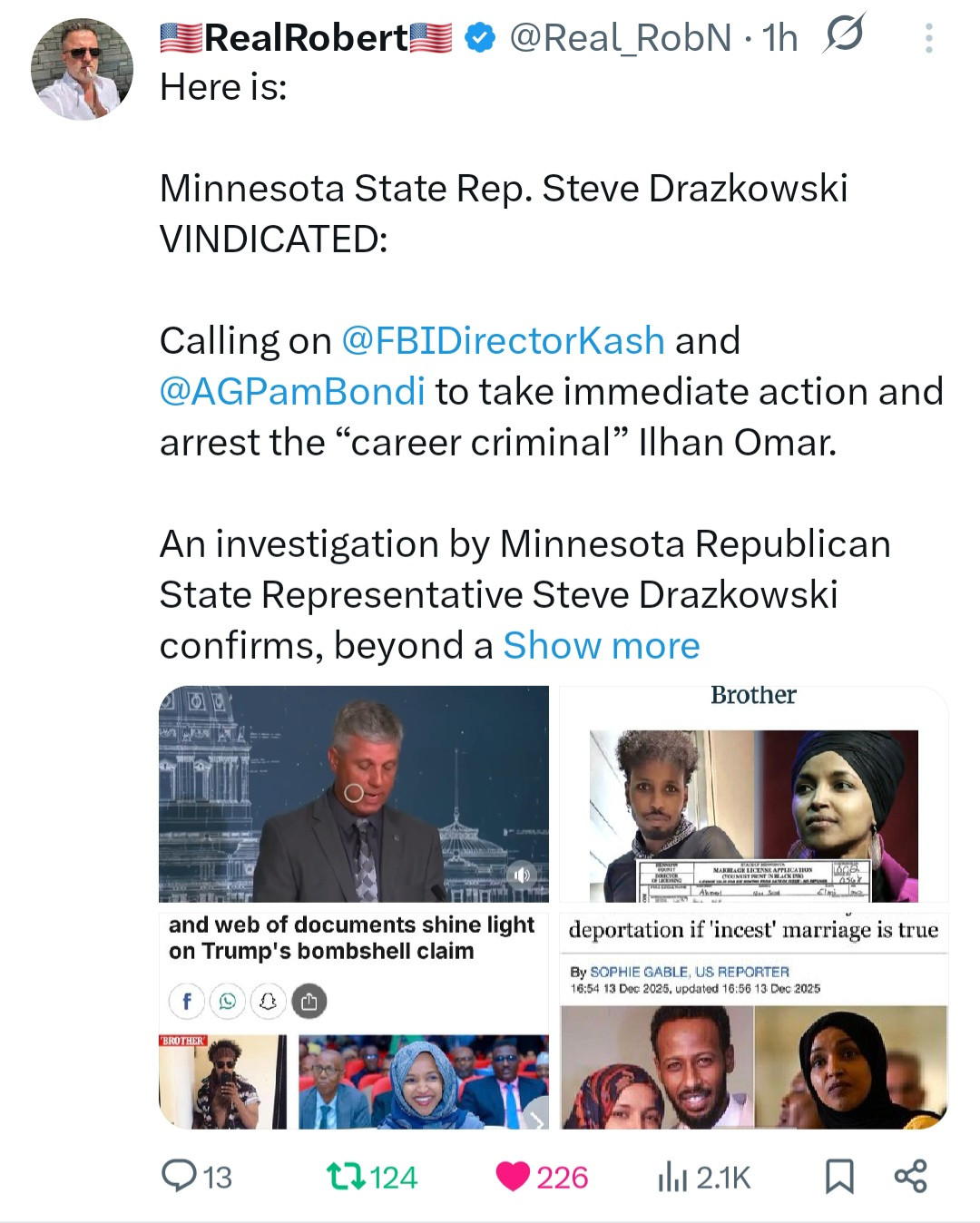 Only hours after Minnesota GOP operative Anton Lazzaro posted online DNA evidence proving Ilhan Omar had committed bigamy and incest, guess what Christopher Wray did? He arrested him. https://x.com/Real_RobN/status/1999662767247380928