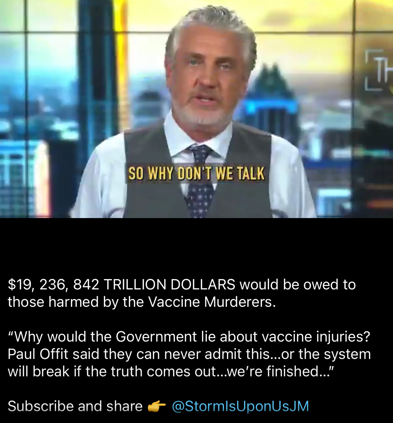 https://www.instagram.com/reel/DSNzSJniCPI/?igsh=NjZiM2M3MzIxNA== $19, 236, 842 TRILLION DOLLARS would be owed to those harmed by the Vaccine Murderers.