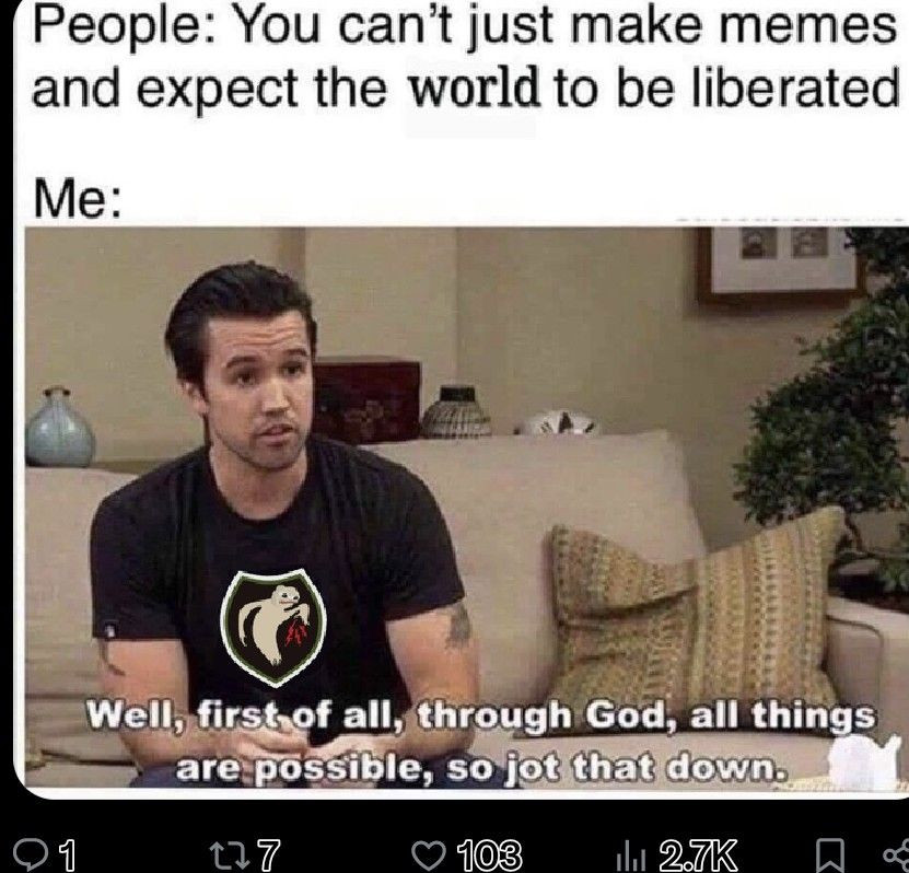 Nice huh... YOU are on the 'FRONT LINES' with nothing more than a quick wit & a dash of 'I can Do all things...'Please GOD HELP ME' and maybe a Rock//slingshot/ rifle/tank/submarine/ TR7 or a 9/ ZAT gun/ C-3 playdough/ COOKIES and a group of patriots who make life interesting ...because WE are IN THIS TO WIN THIS... FOR ALL HUMANITY...Including US