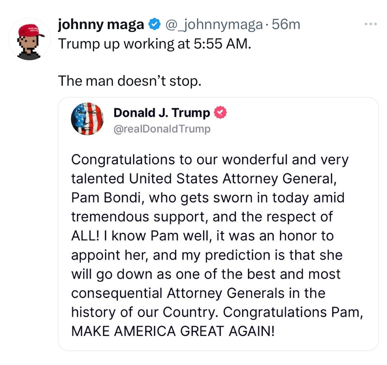 The Senate on Wednesday voted to confirm Pam Bondi as the next attorney general, giving her control of a Justice Department embroiled in controversy. https://thehill.com/regulation/court-battles/5126838-pam-bondi-ag-justice-department-confirmed/