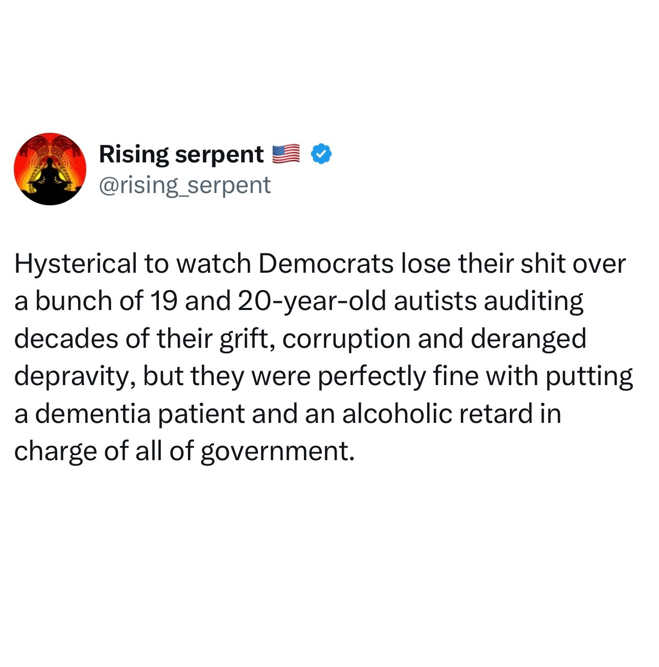 “Now they are on the street having a breakdown because they got caught using $70 billion dollars a year for the benefit of getting reelected, funding pet projects overseas and censoring the American people.”