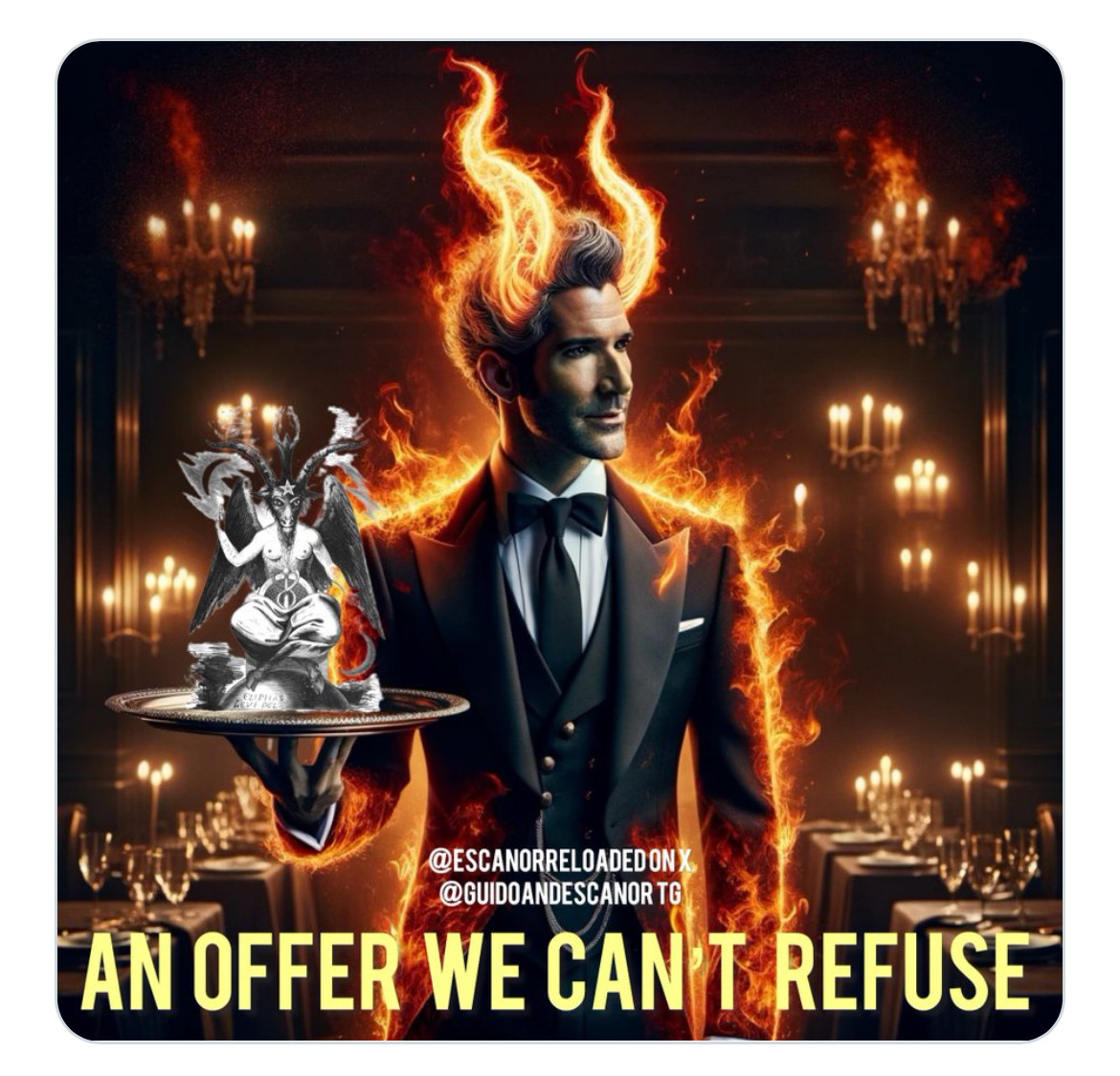 Picture it: Lucifer himself as the waiter, unveiling the heads of the Cabal with a triumphant grin, offering up the very villains we’ve been conditioned to hate. A grand spectacle, a perfectly timed climax to the greatest psyop in modern history.