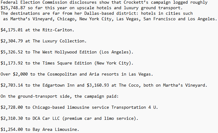 https://thedailybs.com/2025/11/12/jasmine-crocketts-lavish-expenditures-on-travel-luxury-lodging-and-security-exposed/