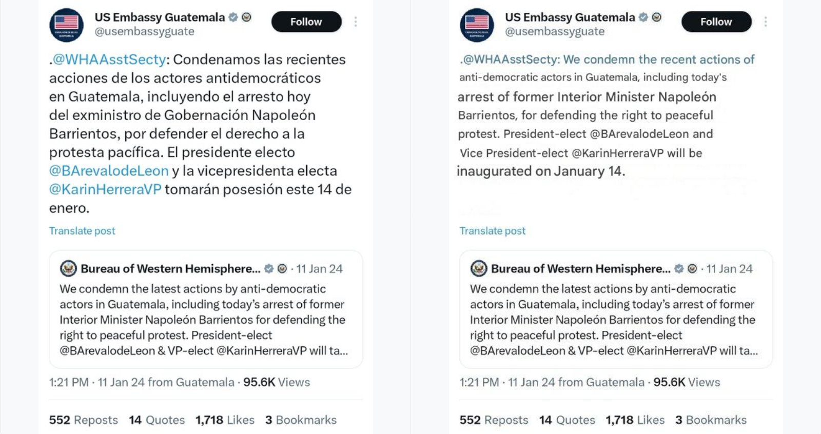 In reaction to the arrests, the same@usembassyguate