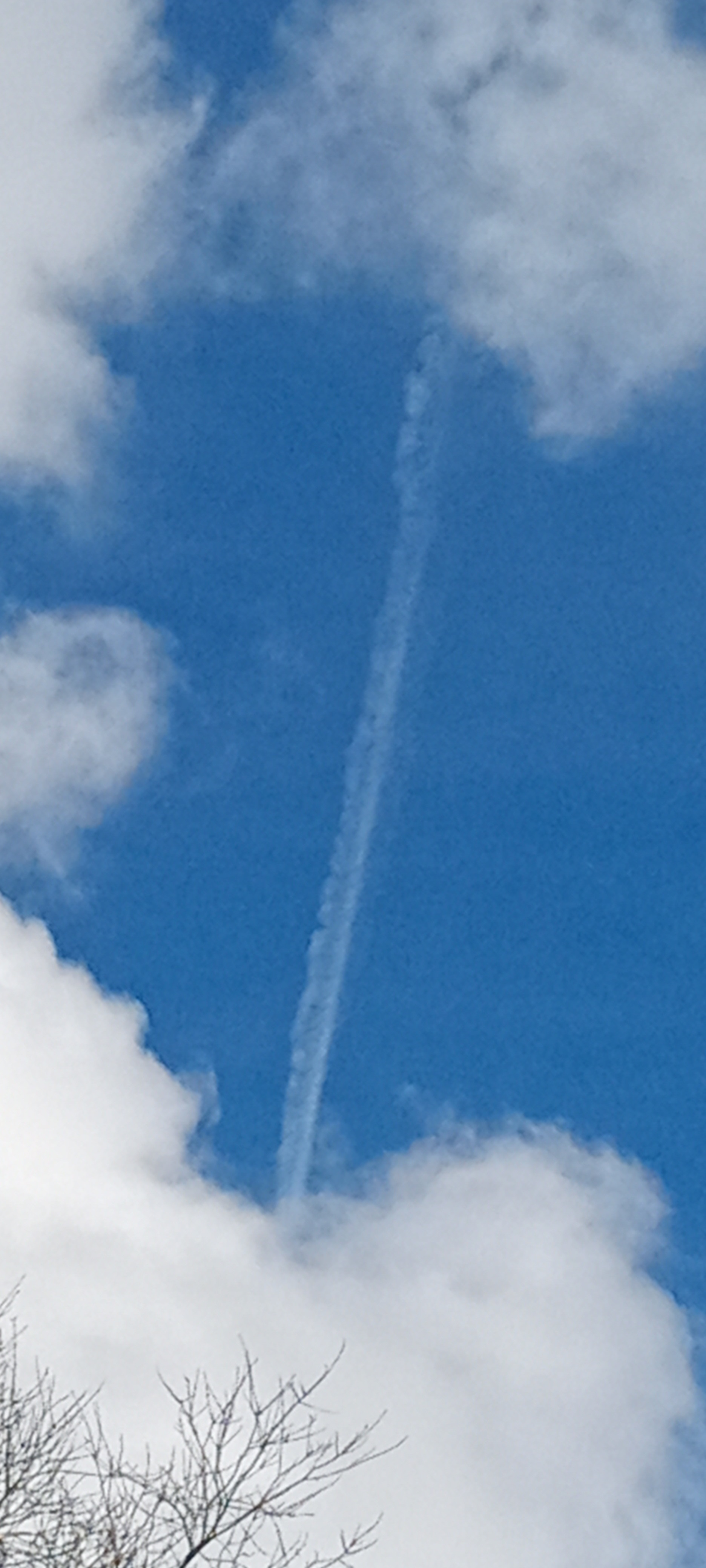 I JUST MISSED IT WITH MY CAMERA, THERE WERE TWO JETS FLYING ONE JUST ABOVE THE OTHER RIGHT NEXT TO EACH OTHER, BOTH SPRAYING ,YOU COULD BARELY SEE THE CHEMTRAIL TO THE RIGHT OF THE TWO BIGGER ONES.