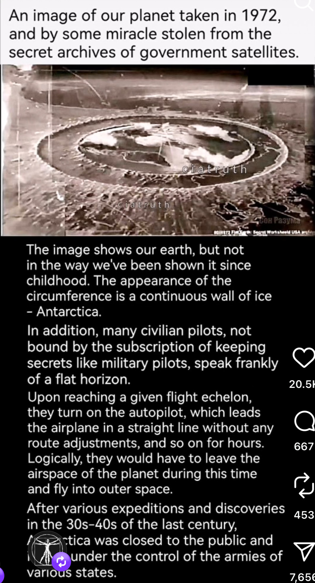 The image shows our earth, but not in the way we've been shown it since childhood. The appearance of the circumference is a continuous wall of ice