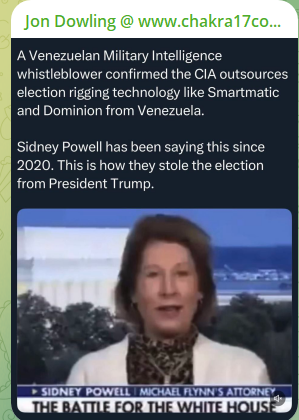 “Dominion Voting Systems manages elections in almost all the swing states in the U.S., which determines who wins the presidency. We have evidence and witnesses that can prove the source code operating the election machines of both Smartmatic and Dominion, and other election companies, are owned by the Venezuelan narco regime. We also have evidence and witnesses proving the machines are manufactured in the People’s Republic of China.”