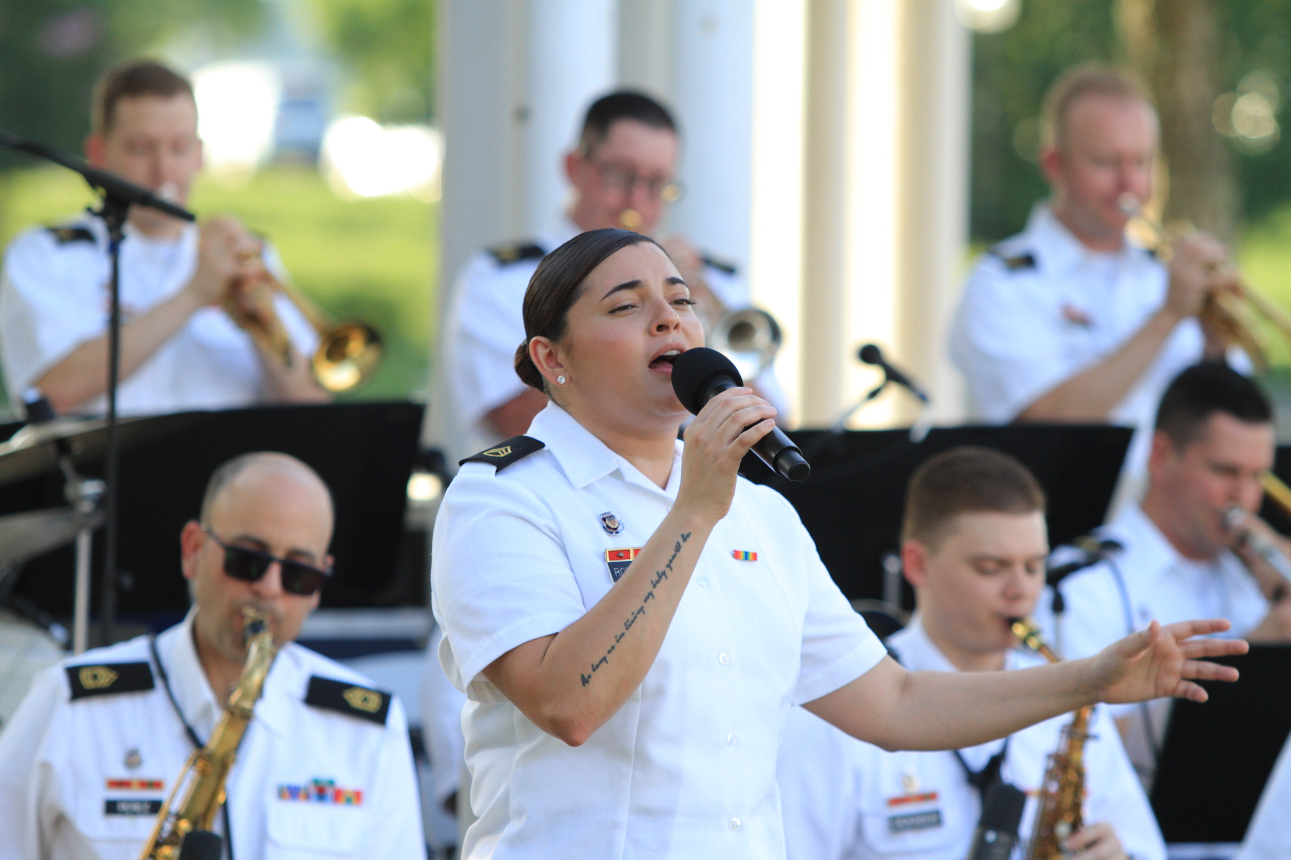 The U.S. Army Blues jazz ensemble performed for the Franconia Nights Summer Concert Series at Lee District Park the songs The Queen Bee, True North, Freedom, Hope and Regret, and featured vocalist SSG Melinda Rodriguez on I'm Hip, I've Got the World on a String, Day Dream, If I Could Fly, the Armed Forces Salute, and What a Little Moonlight Can Do.#ArmyBlues#army250#ArmyBand#BigBand#JazzEnsemble#JazzBand#JAZZ#ArmyMusic#militarymusic#LeeDistrictPark#Fairfax#Virginia#music