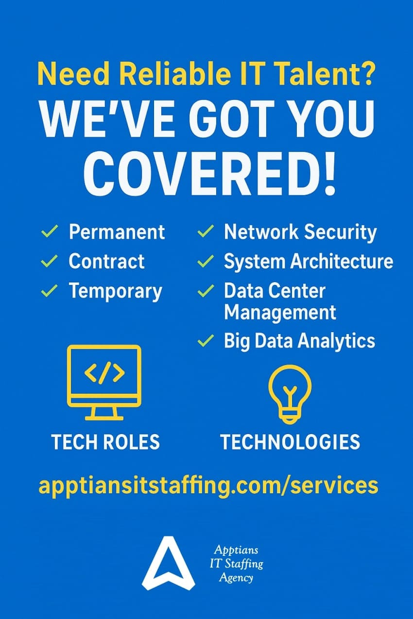 At Apptians IT Staffing, we specialize in placing the best tech professionals — whether you need someone permanent, on contract, temporary, or contract-to-hire.