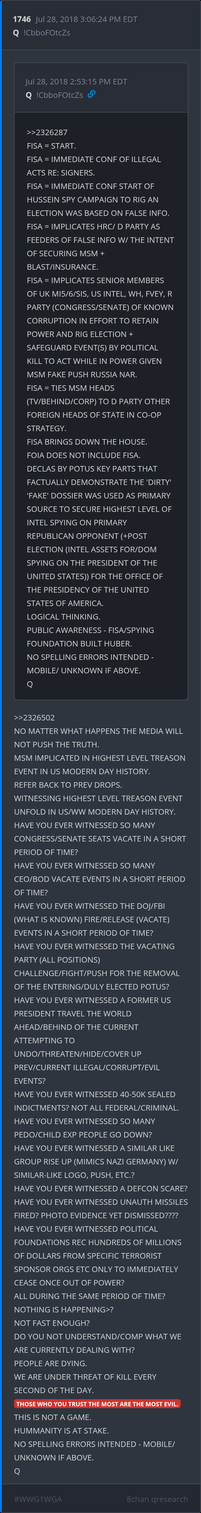We were told in Q Post#1746 "THOSE WHO YOU TRUST THE MOST ARE THE MOST EVIL."