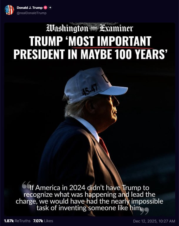 I inherited a MESS from the Biden Administration — The Worst Inflation in History, and the Highest Prices our Country has ever seen. In other words, Affordability, just 13 months ago, was a DISASTER for the American People, but now, it’s totally different! Prices are coming down FAST, Energy, Oil and Gasoline, are hitting five year lows, and the Stock Market today just hit an All Time High. Tariffs are bringing in Hundreds of Billions of Dollars, and we are respected as a Nation again. When will I get credit for having created, with No Inflation, perhaps the Greatest Economy in the History of our Country? When will people understand what is happening? When will Polls reflect the Greatness of America at this point in time, and how bad it was just one year ago?