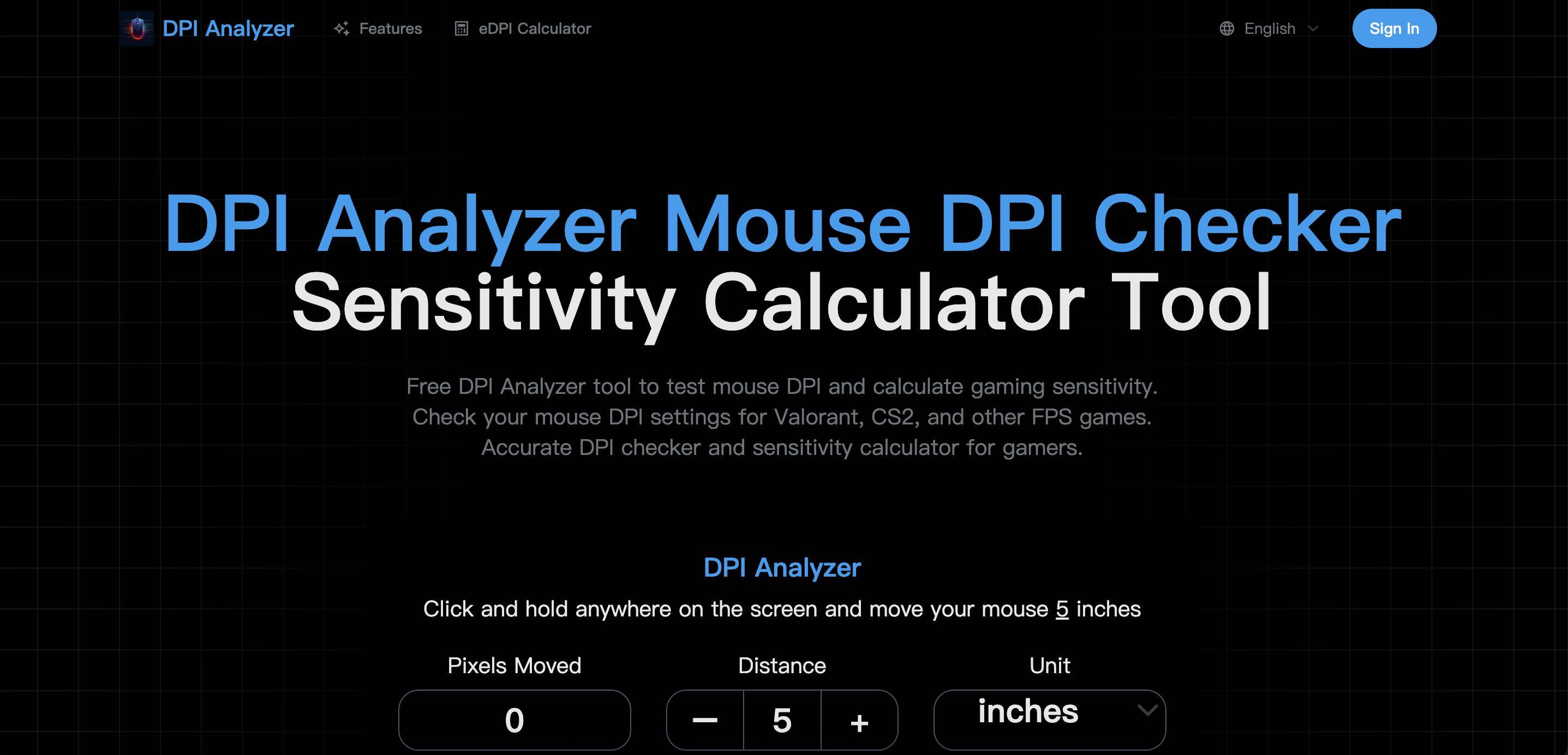 DPI Analyzer is the leading mouse sensitivity testing tool for gamers and professionals. Our free DPI checker provides accurate mouse DPI test results instantly. No downloads required - test your DPI mouse directly in your browser.