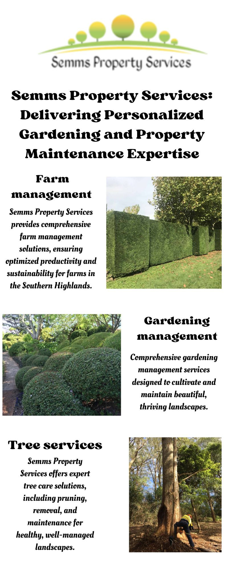 Semms Property Services offers top-notch tree services in Bowral, specializing in tree removal, pruning, and maintenance. Their expert team ensures safe, efficient, and reliable care for your trees, enhancing property aesthetics and health. Trust Semms Property Services for all your Bowral tree care needs.