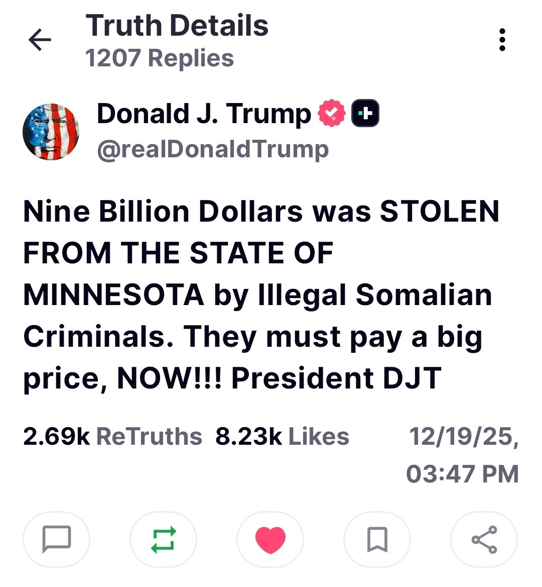 2.69k ReTruths 8.23k Likes 12/19/25, 03:47 PM