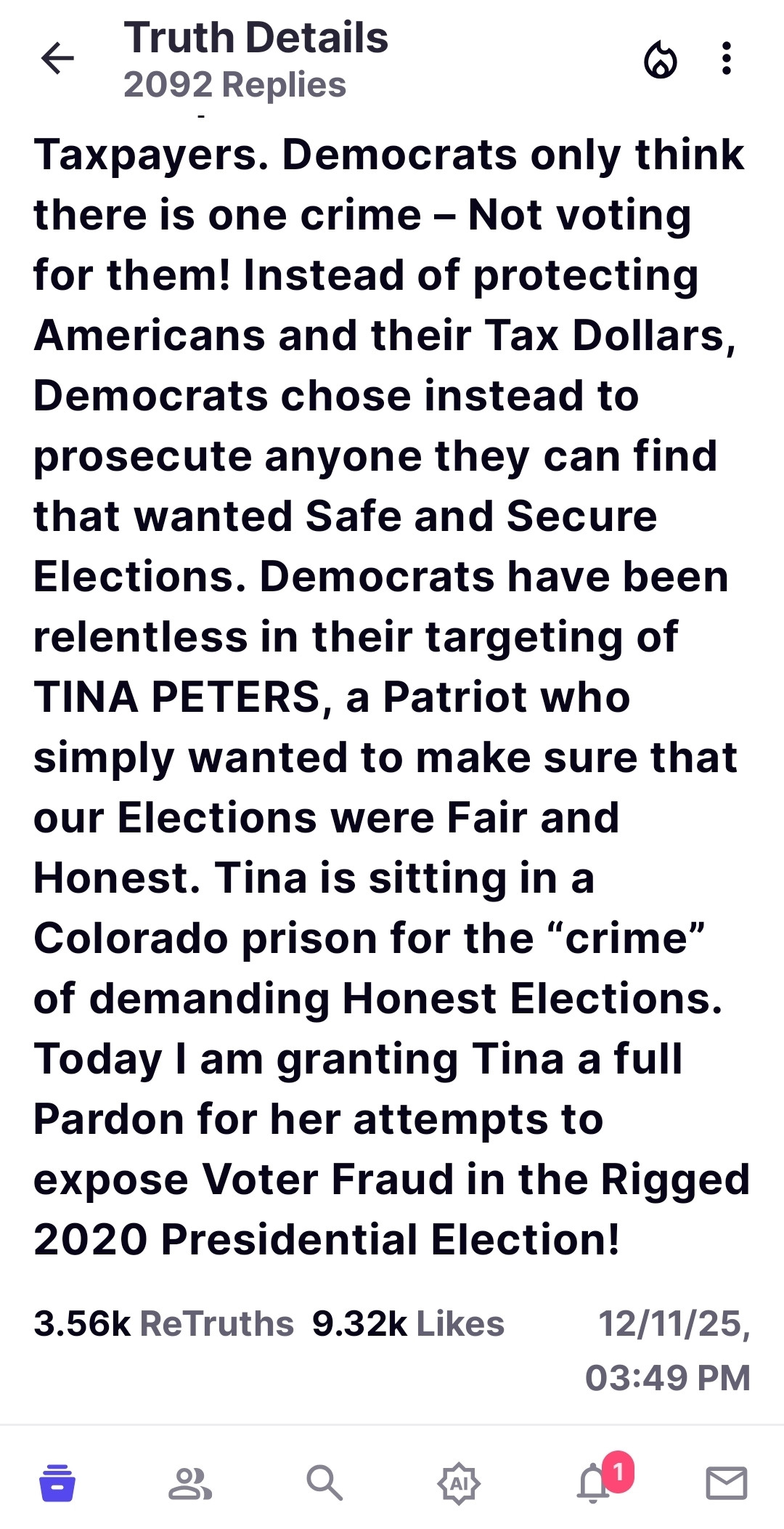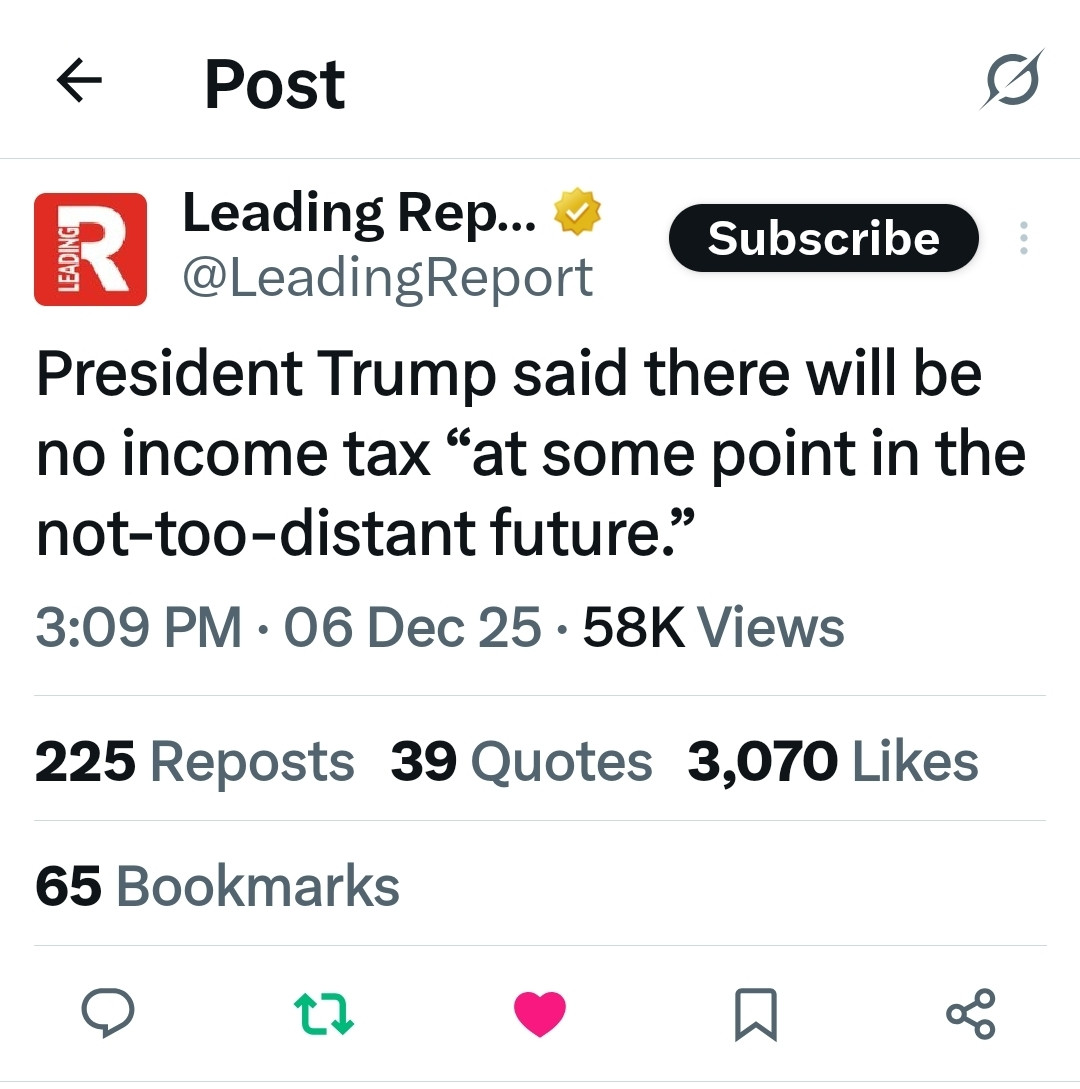 17.4k ReTruths 65.4k Likes 12/2/25, 02:52 PM