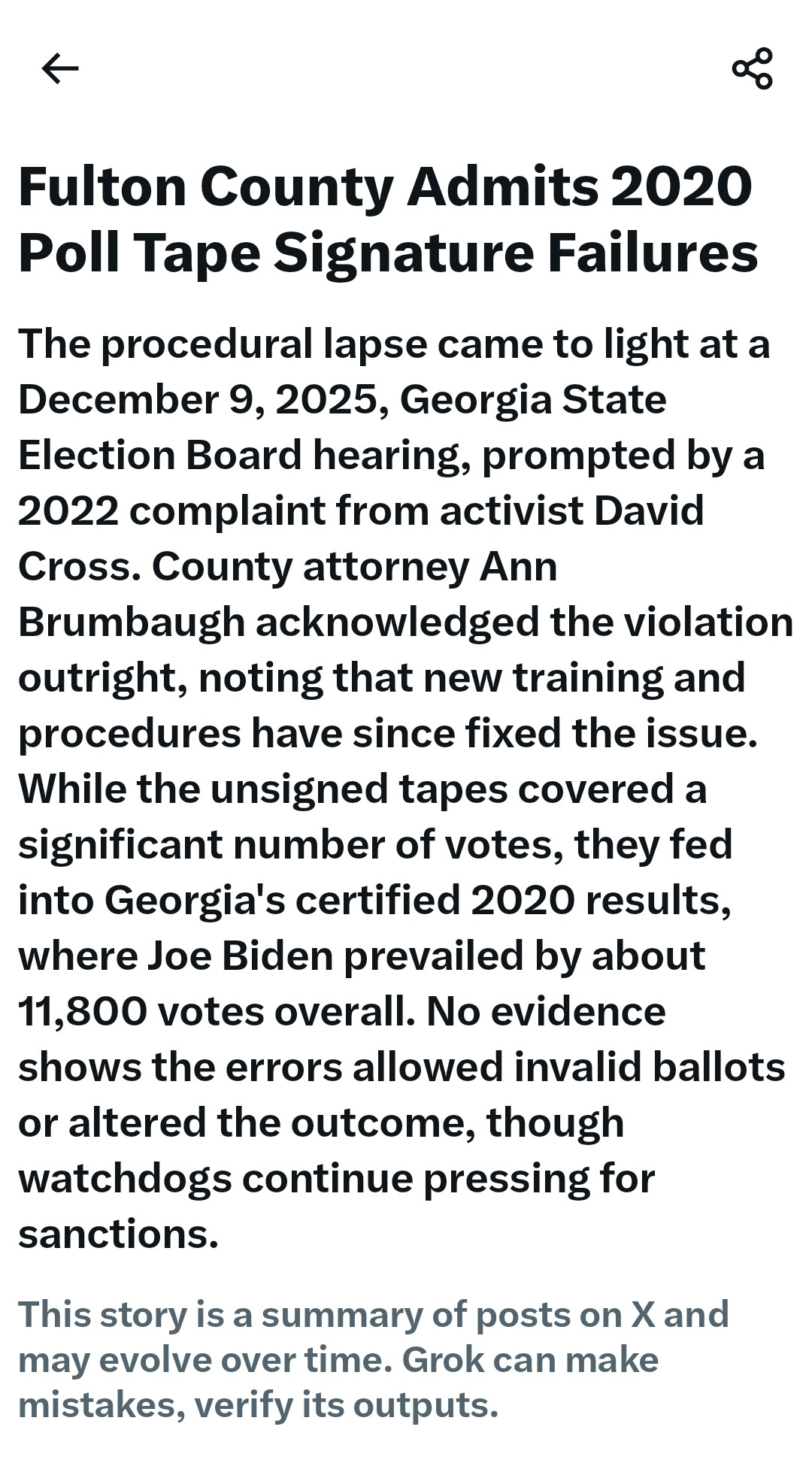 Fulton County Admits 2020 Poll Tape Signature Failures