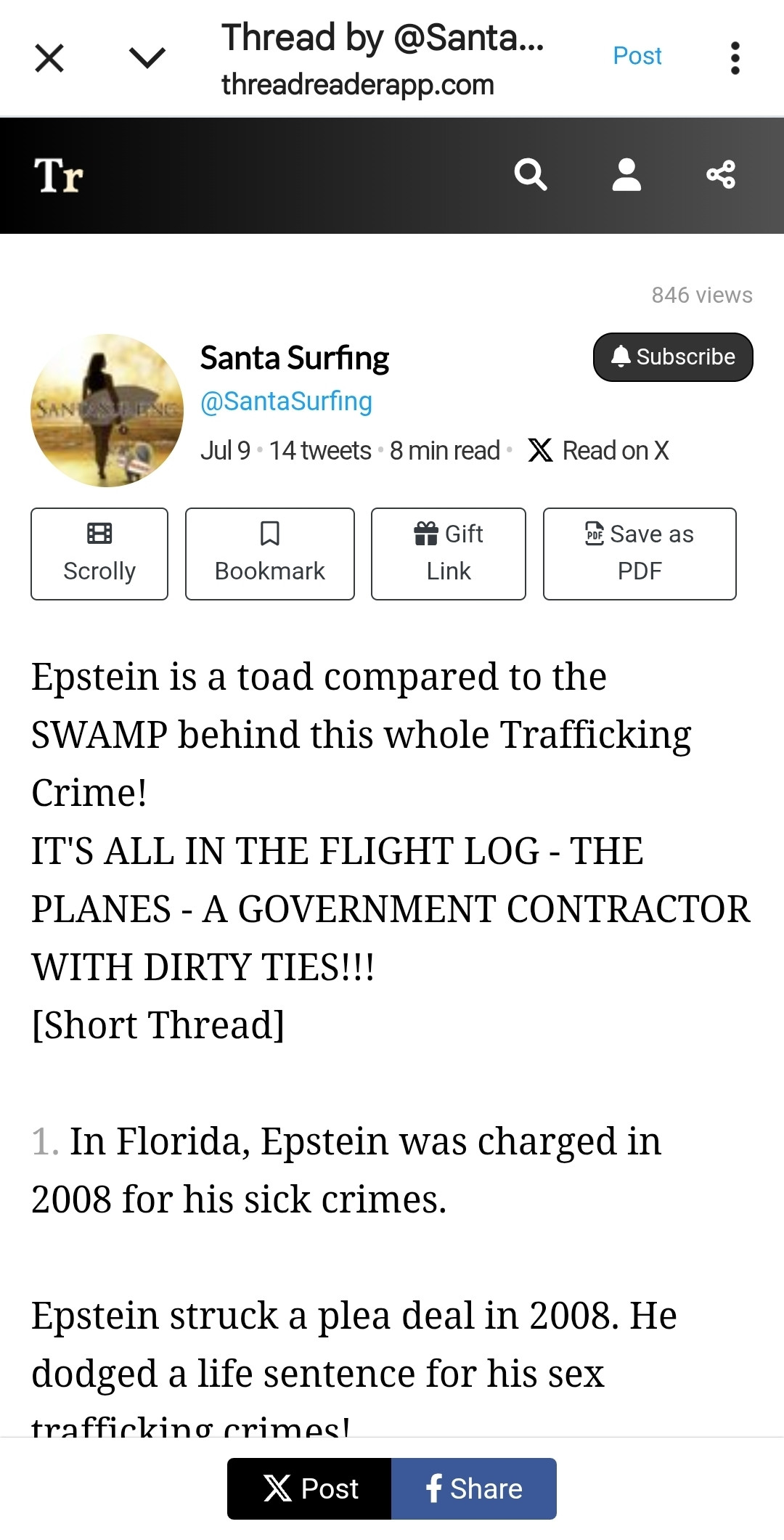 @SantaSurfing: Epstein is a toad compared to the SWAMP behind this whole Trafficking Crime! IT'S ALL IN THE FLIGHT LOG - THE PLANES - A GOVERNMENT CONTRACTOR WITH DIRTY TIES!!! [Short Thread] 1. In Flori…