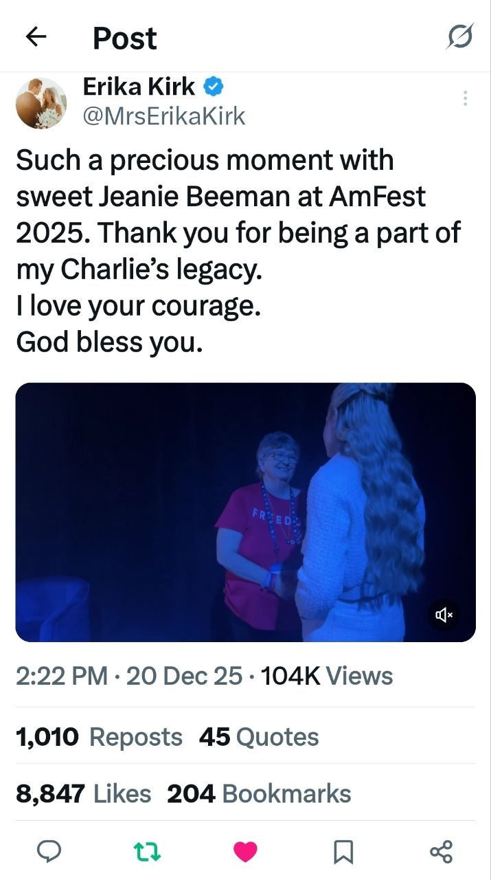 Such a precious moment with sweet Jeanie Beeman at AmFest 2025. Thank you for being a part of my Charlie’s legacy.