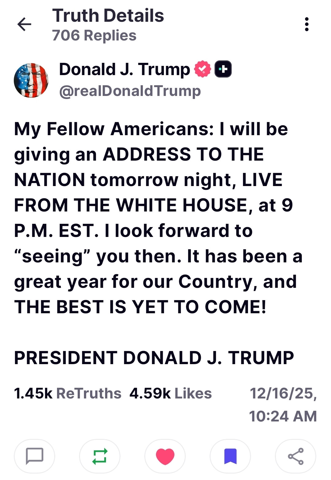 1.45k ReTruthes 4.59k Likes 12/16/25, 10:24 AM