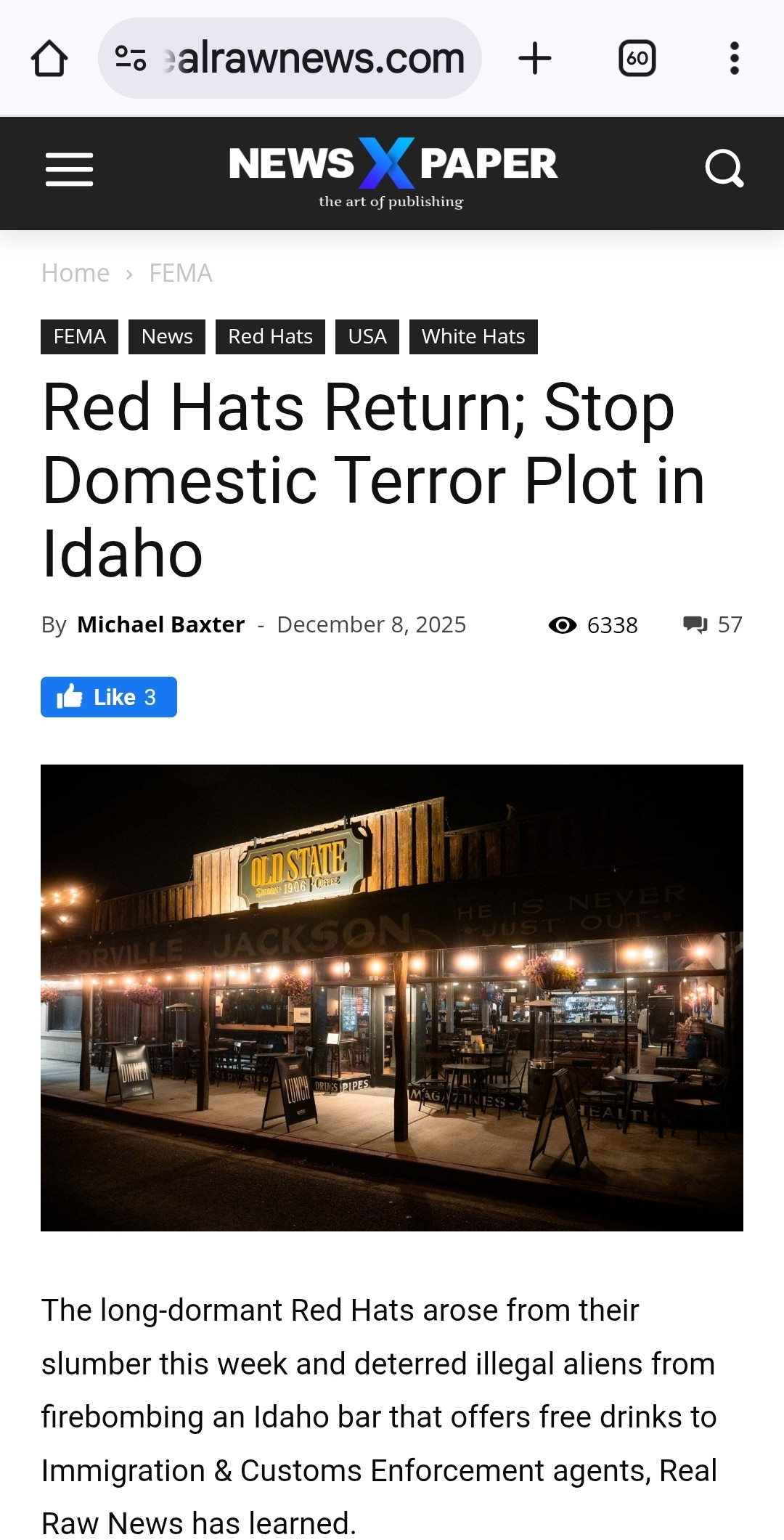 The long-dormant Red Hats arose from their slumber this week and deterred illegal aliens from firebombing an Idaho bar that offers free drinks to Immigration & Customs Enforcement agents, Real Raw News has learned.