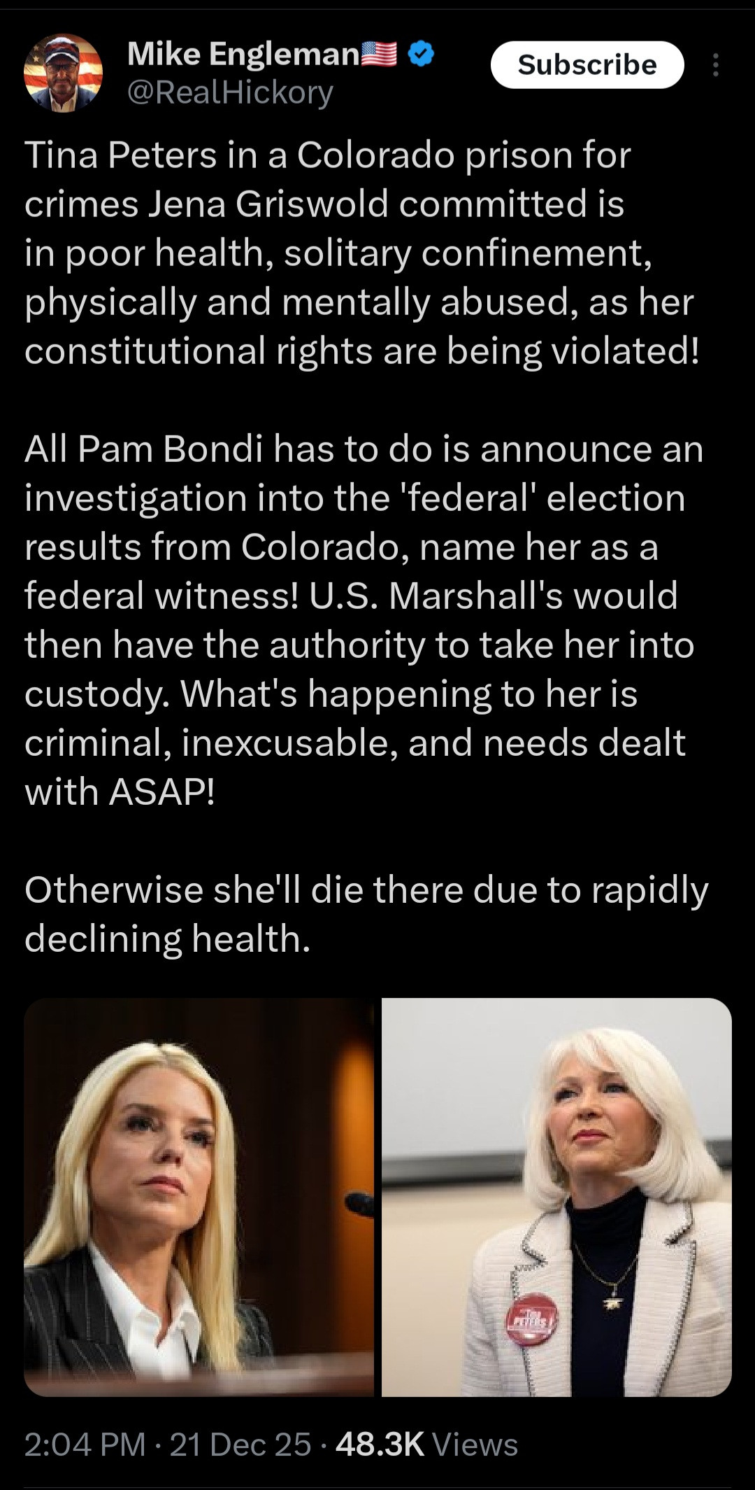 COLORADO, INC., "Administrators", "Public Officials", from Governor down to Prison Guards are engaged in INSURRECTION and Violating Tina Peters' Civil (Inalienable) Rights, especially in violating a PRESIDENTIAL PARDON, and have now even opened themselves to PERSONAL LIABILITY of massive proportions, Civil & maybe Criminal Liability - ANYONE DIRECTLY OR INDIRECTLY INVOLVED IN TINA PETERS CAPTIVITY.