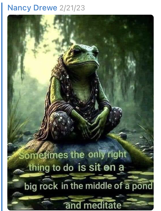 Where is everyone disappearing to? I have to admit, I am limiting my time here and all other SM, to be in nature or with family or doing all the things I have neglected for the past few years. Tired of the waiting, but working on being a good person to those around me and in my community.