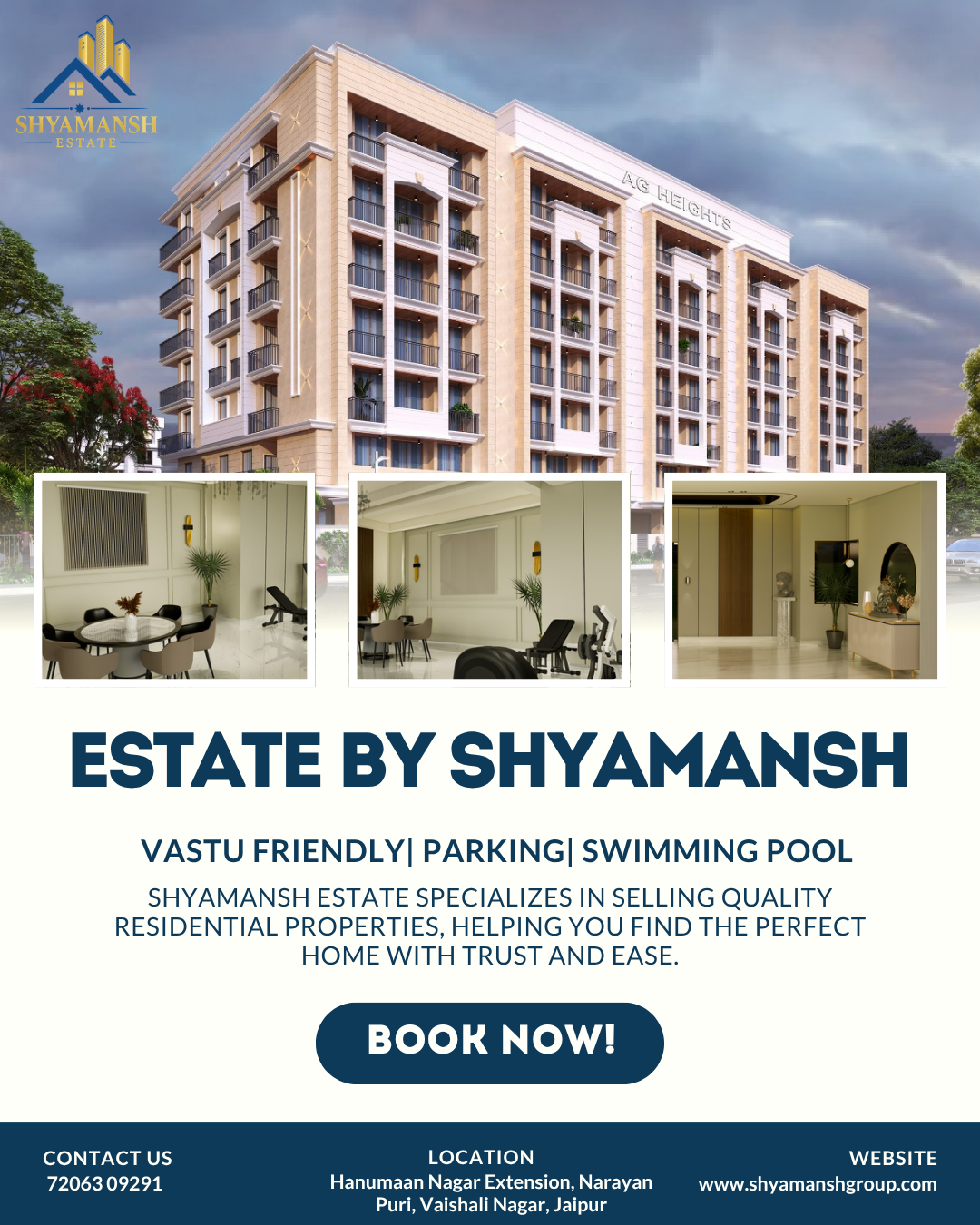 Thinking of investing in Jaipur real estate? Explore properties in fast-developing areas like Ajmer Road, Jagatpura, and Vaishali Nagar with Shyamansh Estate. From budget flats to premium villas, we help you buy property in Jaipur that matches your needs and future value. Get full support and verified deals from the best property dealer in Jaipur.